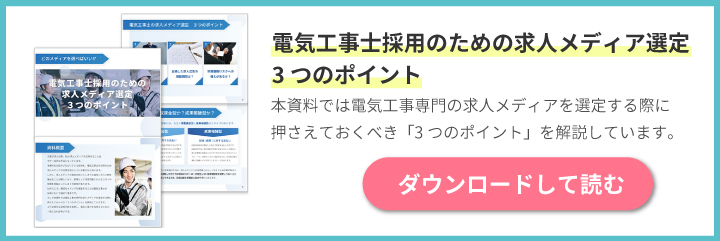 ▼電気業界における求人メディア選定について、より詳しく知りたい方は、こちらの資料もぜひご一読ください。